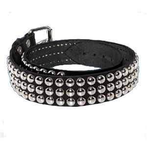 A belt for life! Three rows of 1/2" dot studs adorn this high quality leather belt. Unlike those disposable cheapo bonded leather belts with their short life and quality, these belts are handmade from thick 100% Black Leather and will last as long as you do! They're 1 3/4" wide and are made with detachable buckles so you can customize 'em. Check out the matching wristband, too!