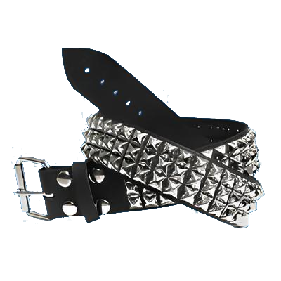 A belt for life! Three rows of chrome pyramid studs adorn this high quality leather belt. Unlike those disposable cheapo bonded leather belts from places like Hot Topic with their short life and quality, these belts are handmade from thick 100% Black Leather and will last as long as you do! 1-3/4" Wide. Fits most belt loops. They're also made with detachable buckles so you can customize 'em.
